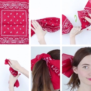 Nouer le bandana en dessous du chignon.porter un foulard en soie en bandana pour une femme autour du cou ou sur la tête est très tendance cette saison mais il faut savoir le mettre.